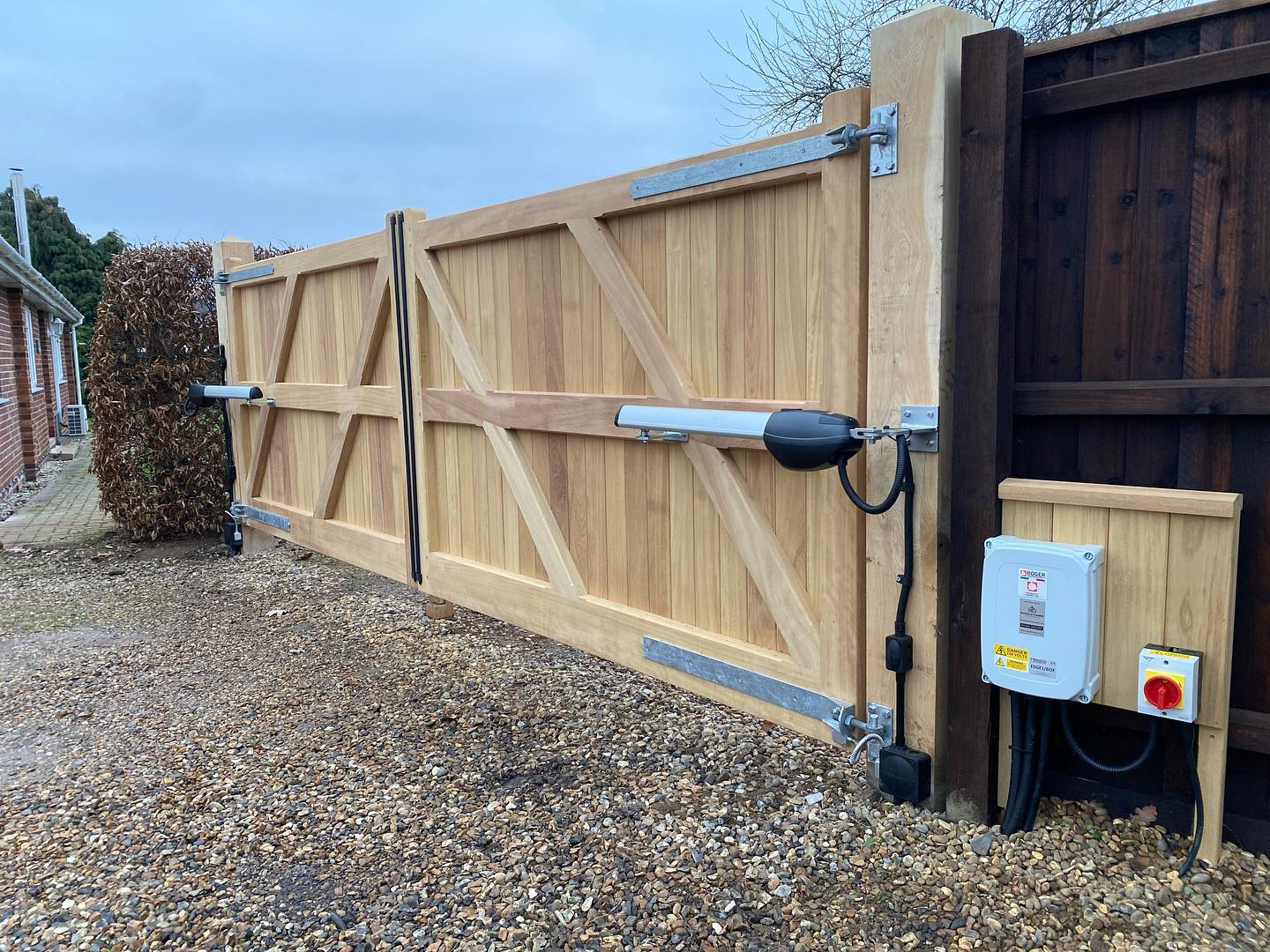 Thiết bị motor cổng mở cánh tay đòn Roger – Italia hay còn gọi Cổng tự động Roger BE20 bao gồm bộ đôi cánh tay đòn lắp đặt trực tiếp vào 2 bên cánh cổng. Sự chắc chắn, động cơ hoạt động mạnh mẽ dùng lắp đặt cho cổng siêu sang trọng có trọng tải lớn 300kg/cánh mang vẻ đẹp hiện đại, khang trang lên bộ cổng