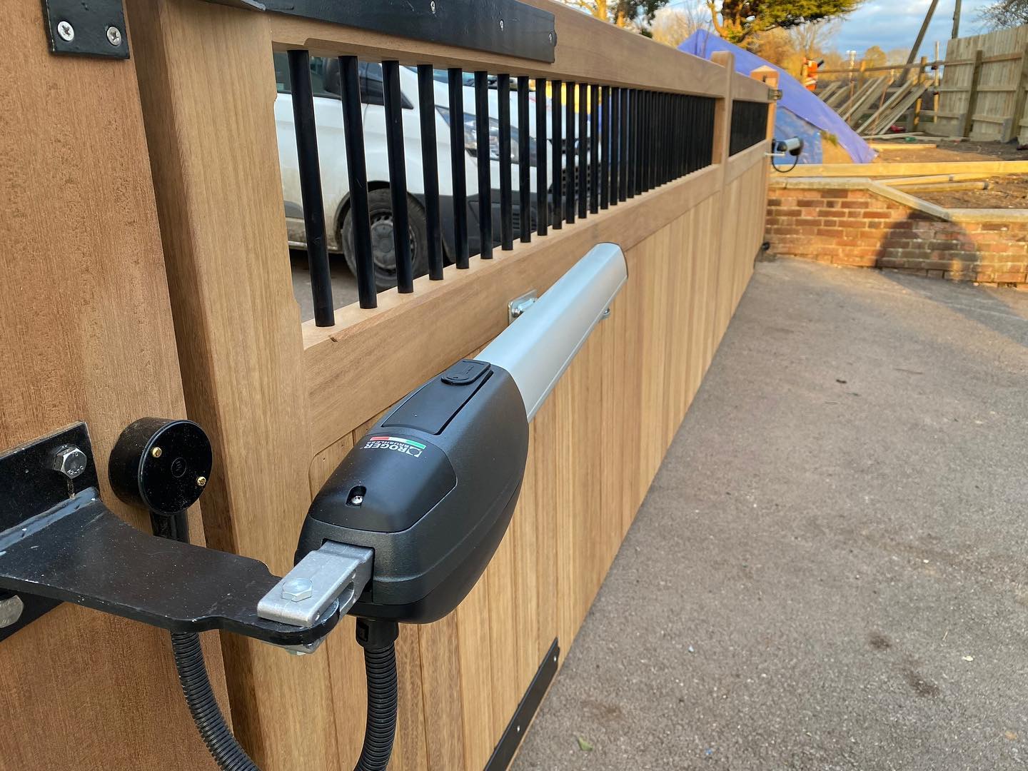 – Cổng tự động hoạt động êm ái nhờ động cơ không chổi than 24V
